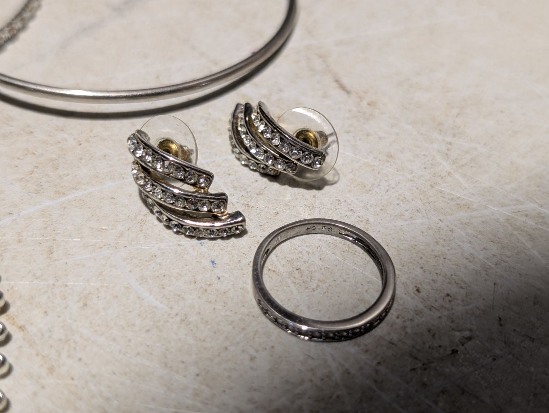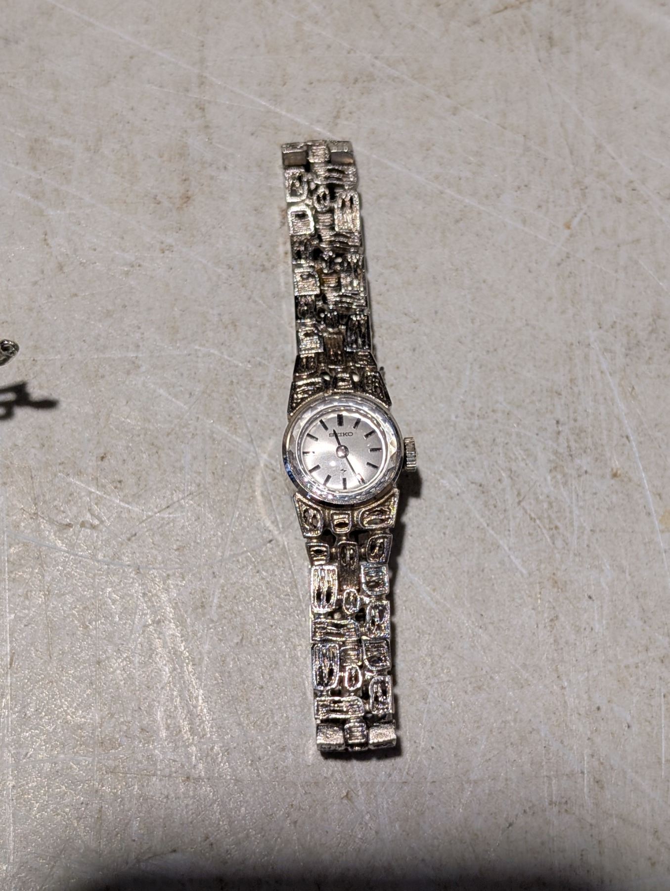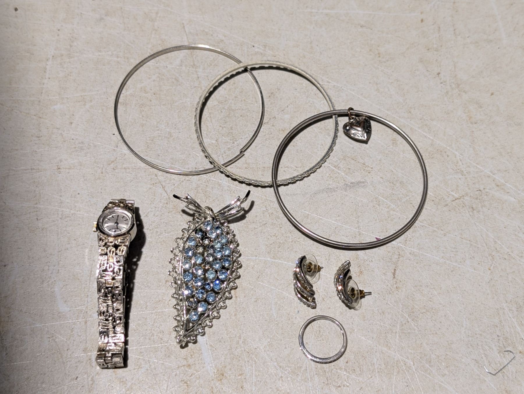 Silver Tone Quart Watch ,Bangles with silver Heart Locke, Silver Brooch