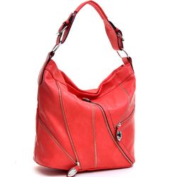 Silver-Tone Zipper Front Hobo Bag with Buckle Shoulder Strap