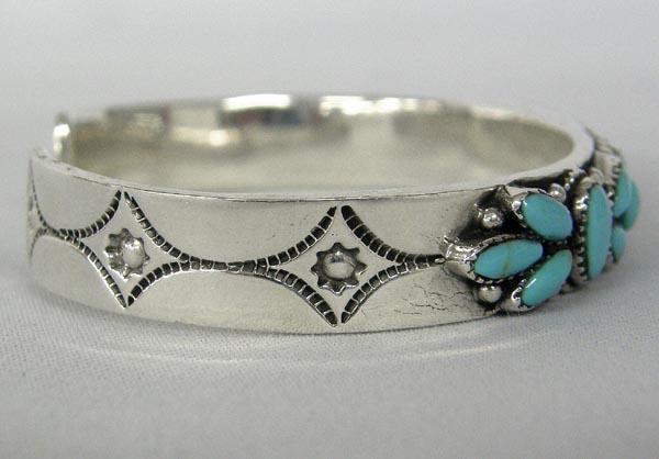 Silver Turquoise Bracelet Southwest Style. Stamped ''925'' on inside. Measures 6.25'' inside including opening and 0.25'' wide. SHI $15.