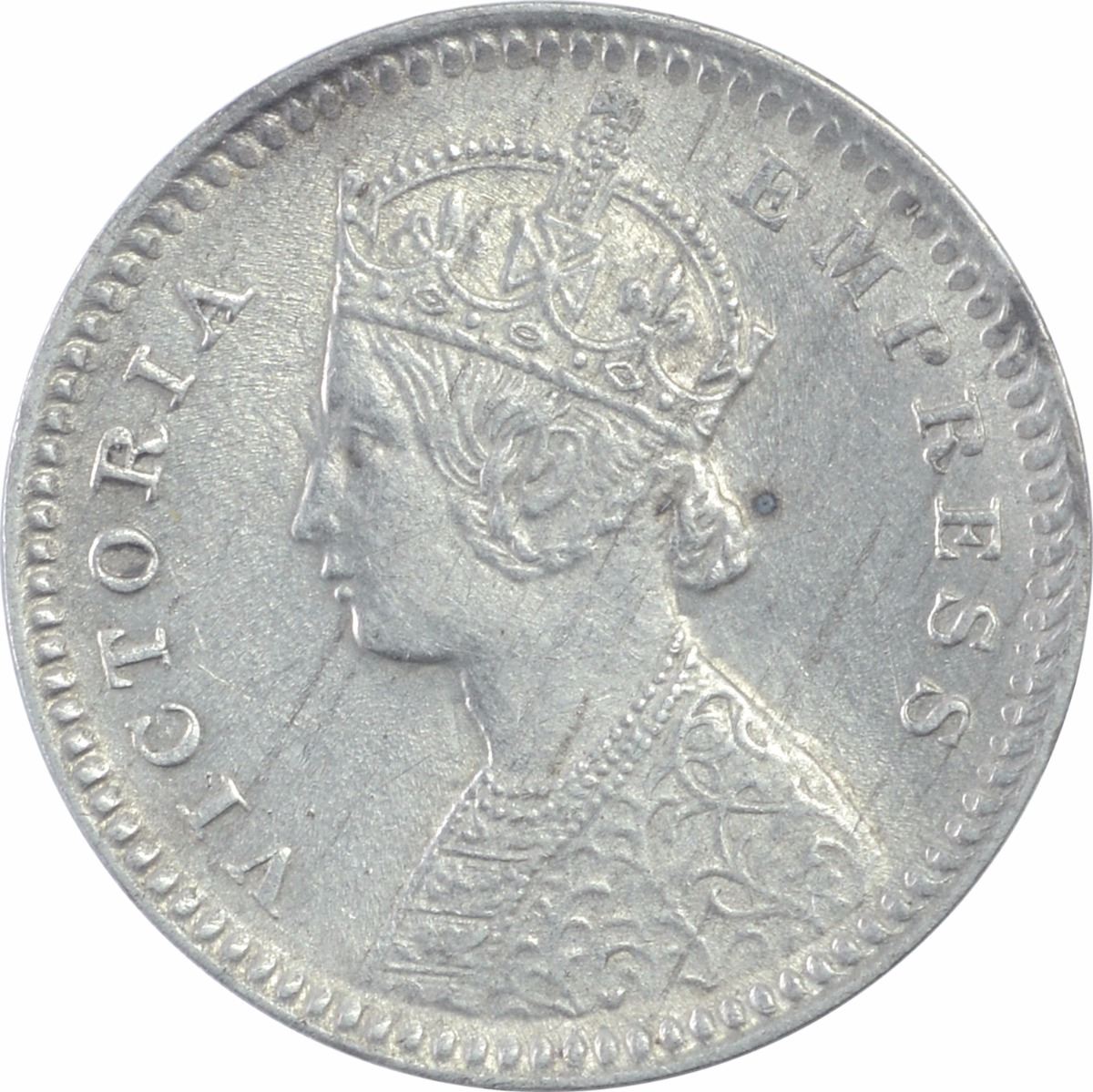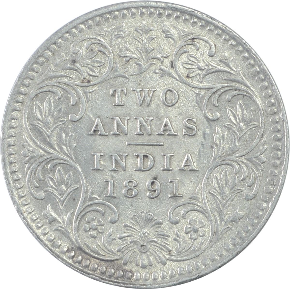 Silver Two Anna Coin of Victoria Empress of Calcutta Mint of 1891.