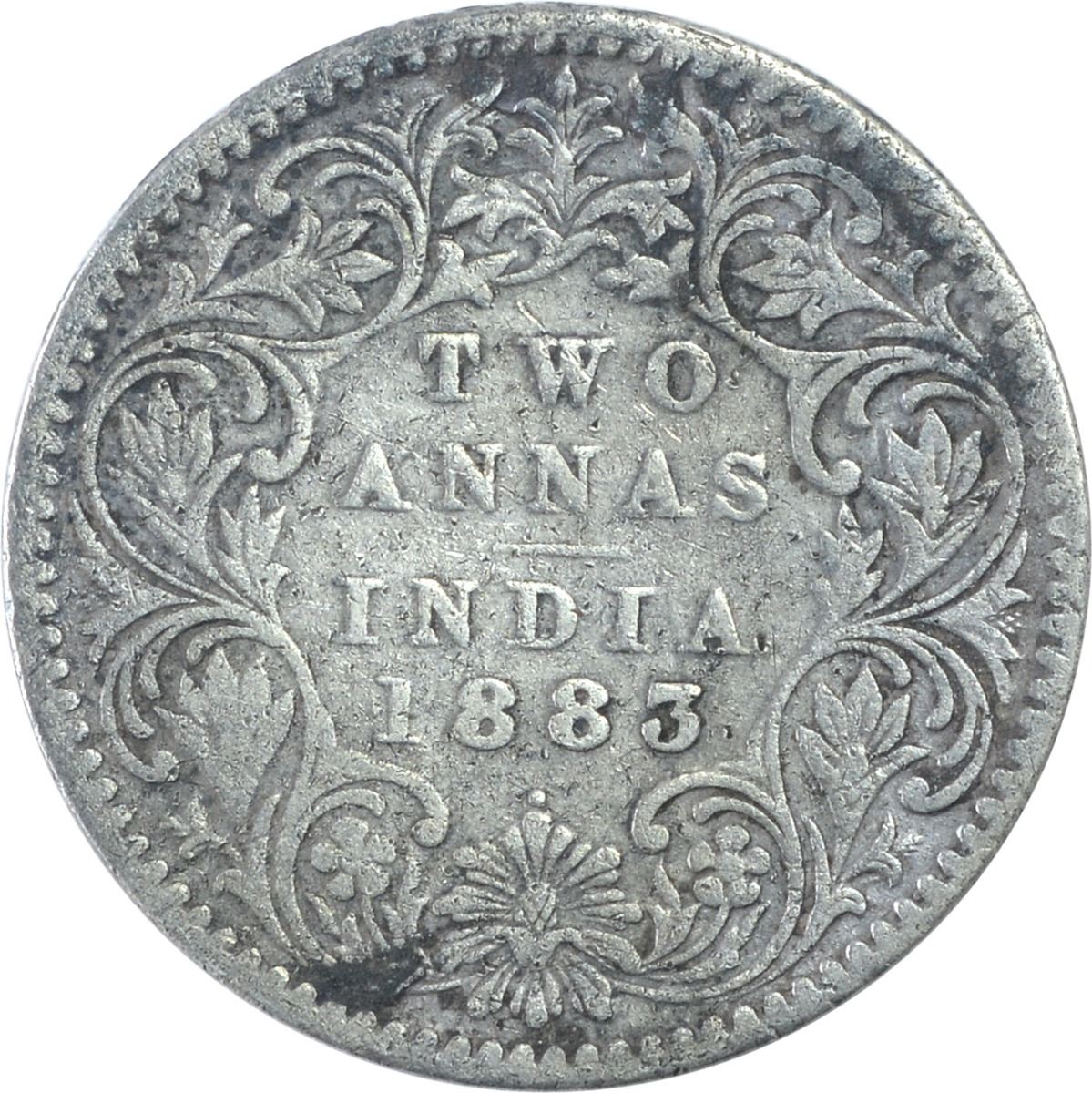 Silver Two Annas Coin Of Victoria Empress of Bombay Mint of 1883.