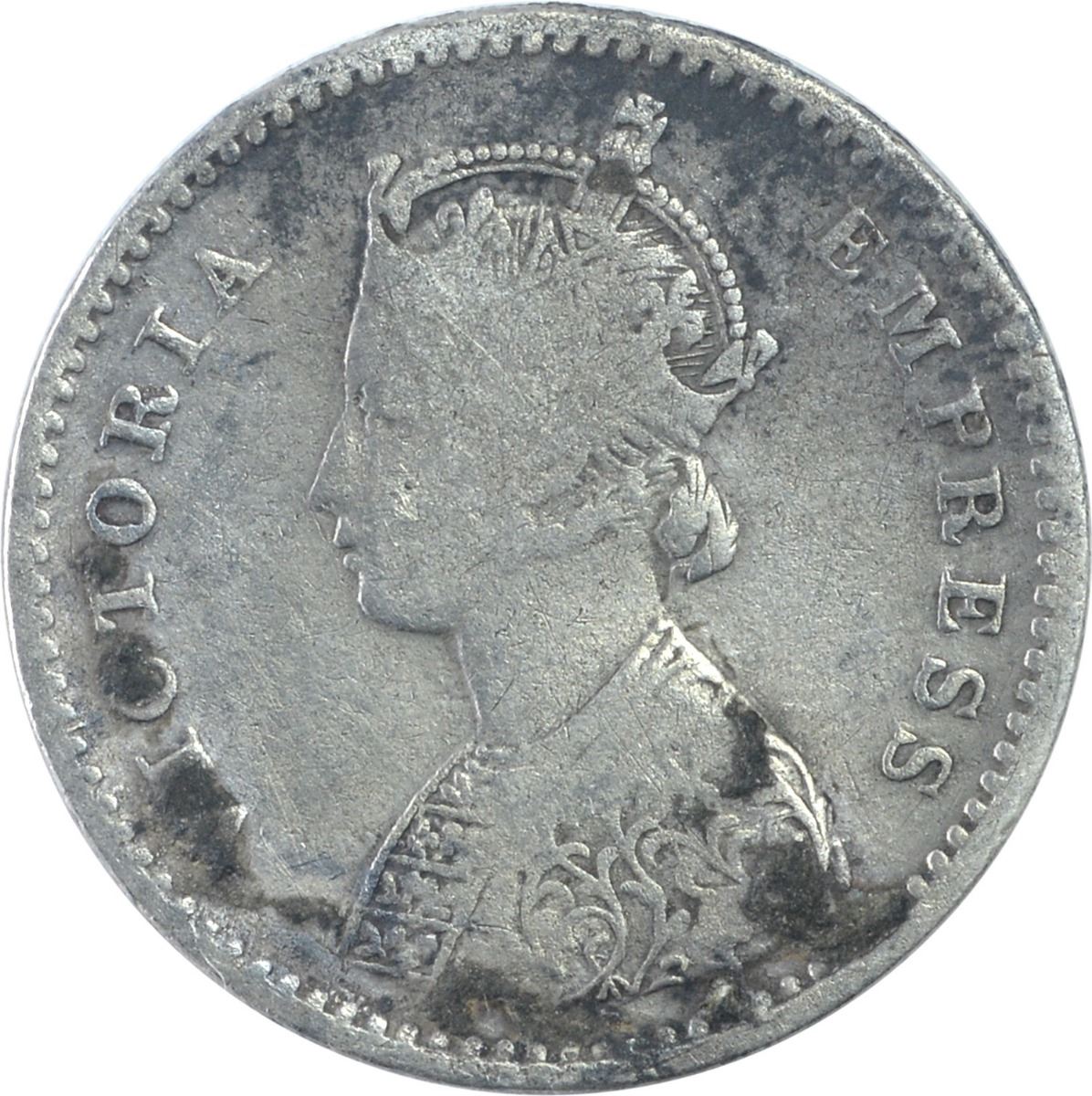 1883, Victoria Empress, Silver 2 Annas, Bombay Mint, A/I/Dot, (PR # 529), about very fine, Scarce