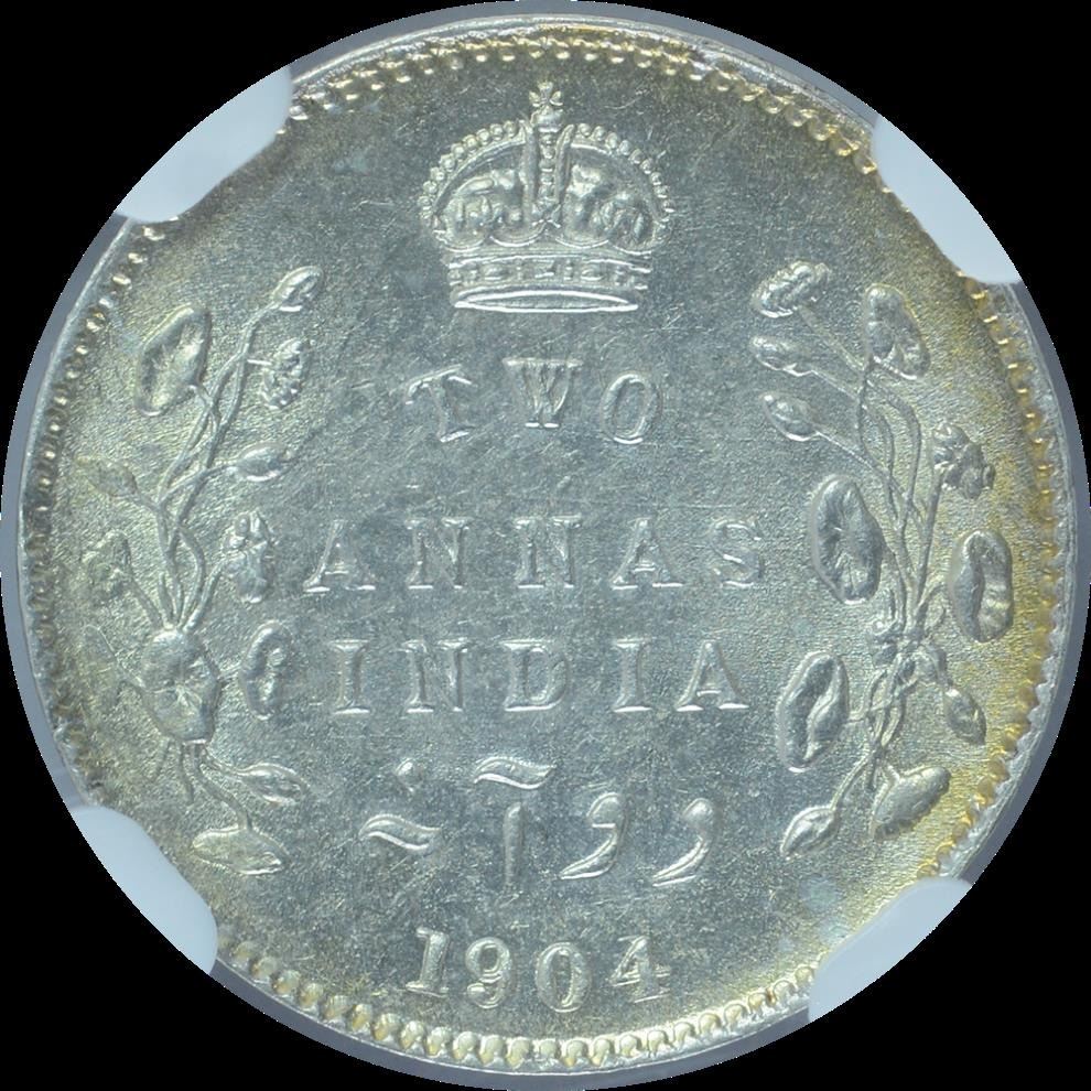 1904,King Edward VII,Silver 2 Annas,Calcutta Mint,(PR # 557),Graded Slabbed by NGC as MS 63,Scarce.