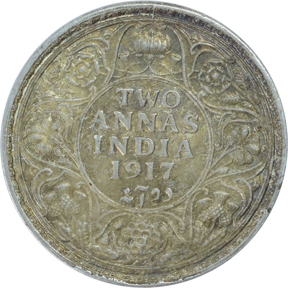 1917,King George V,Silver 2 Annas,Calcutta Mint,(PR # 570),UNC.