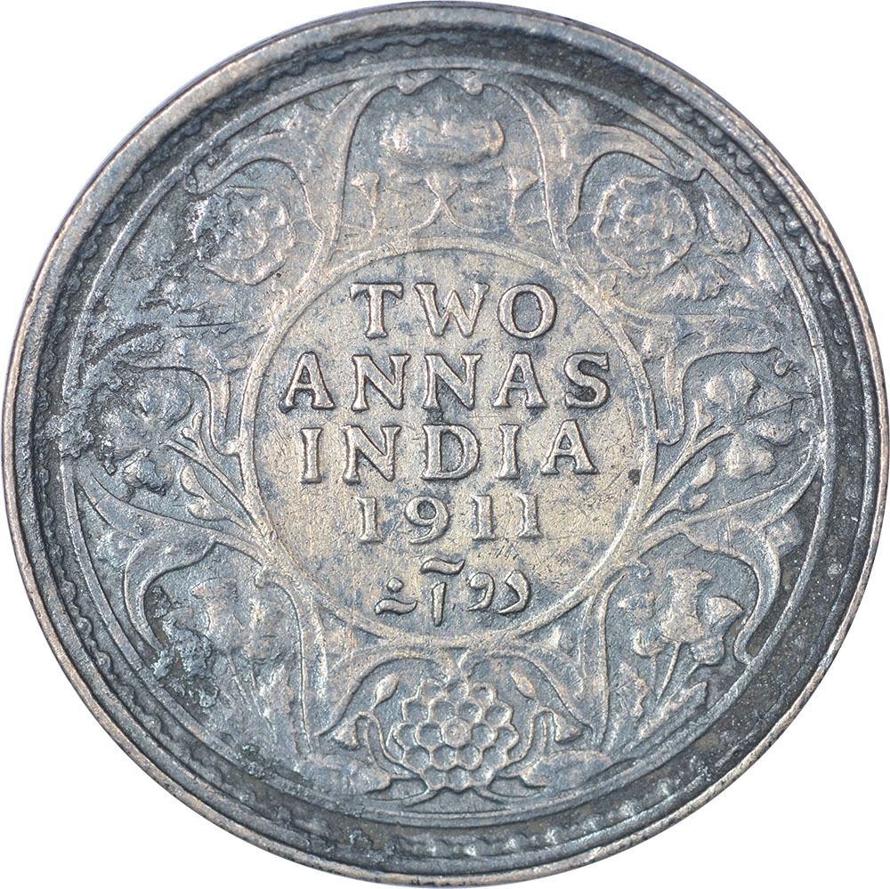 Silver Two Annas Coin of King George V of Calcutta Mint of 1911.
