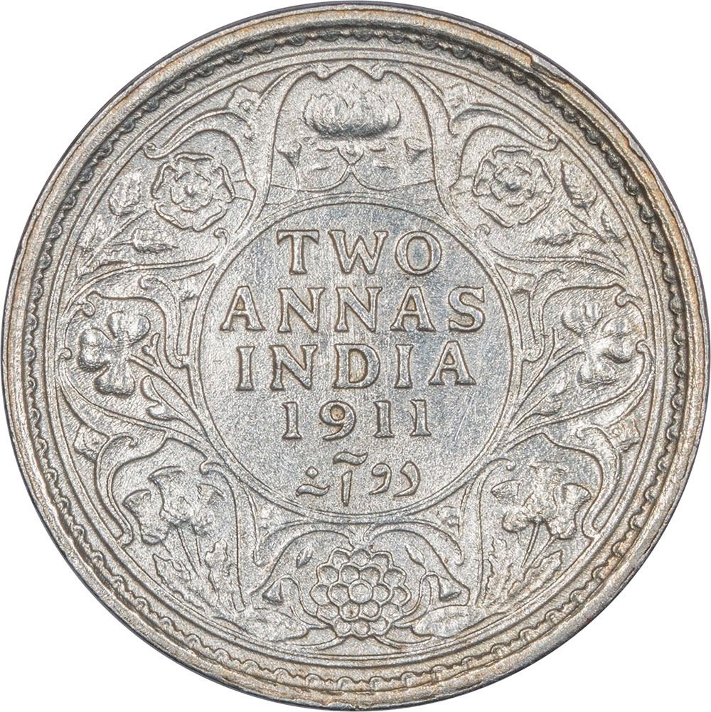 1911, King George V, Silver 2 Annas, Calcutta Mint, (PR # 564),topUNC, Very Rare.Extremely tough to get this superb quality in this rare year, missing from various collection.