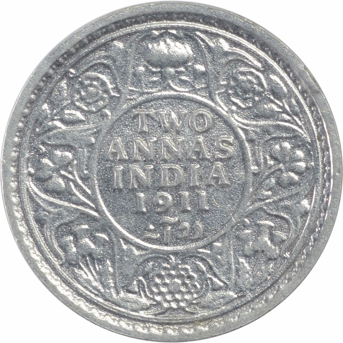 Silver Two Annas Coin of King George V of Calcutta Mint of 1911.