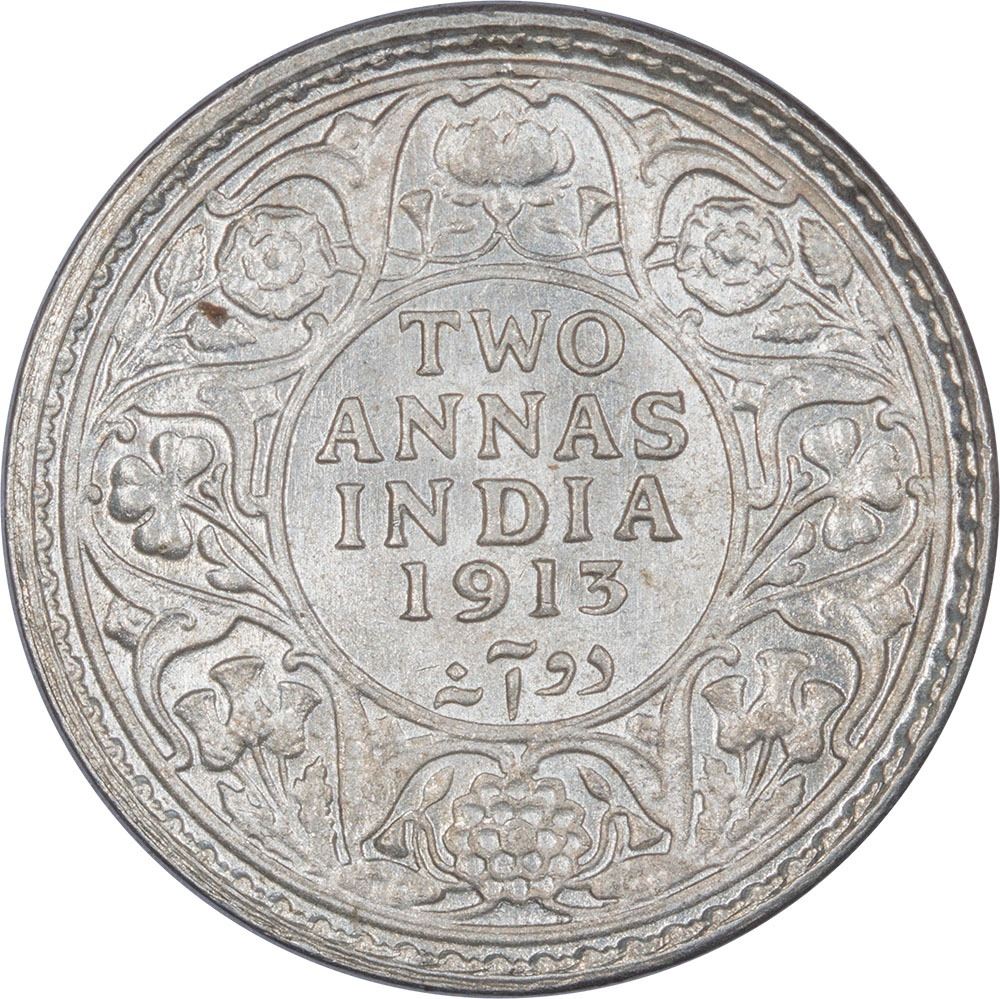 Silver Two Annas Coin of King George V of Calcutta Mint of 1913.
