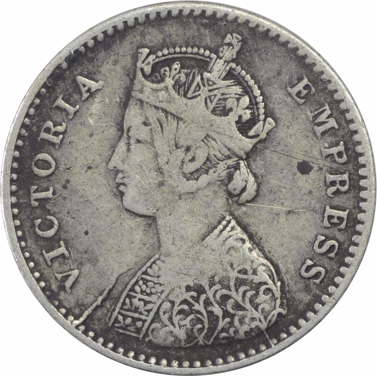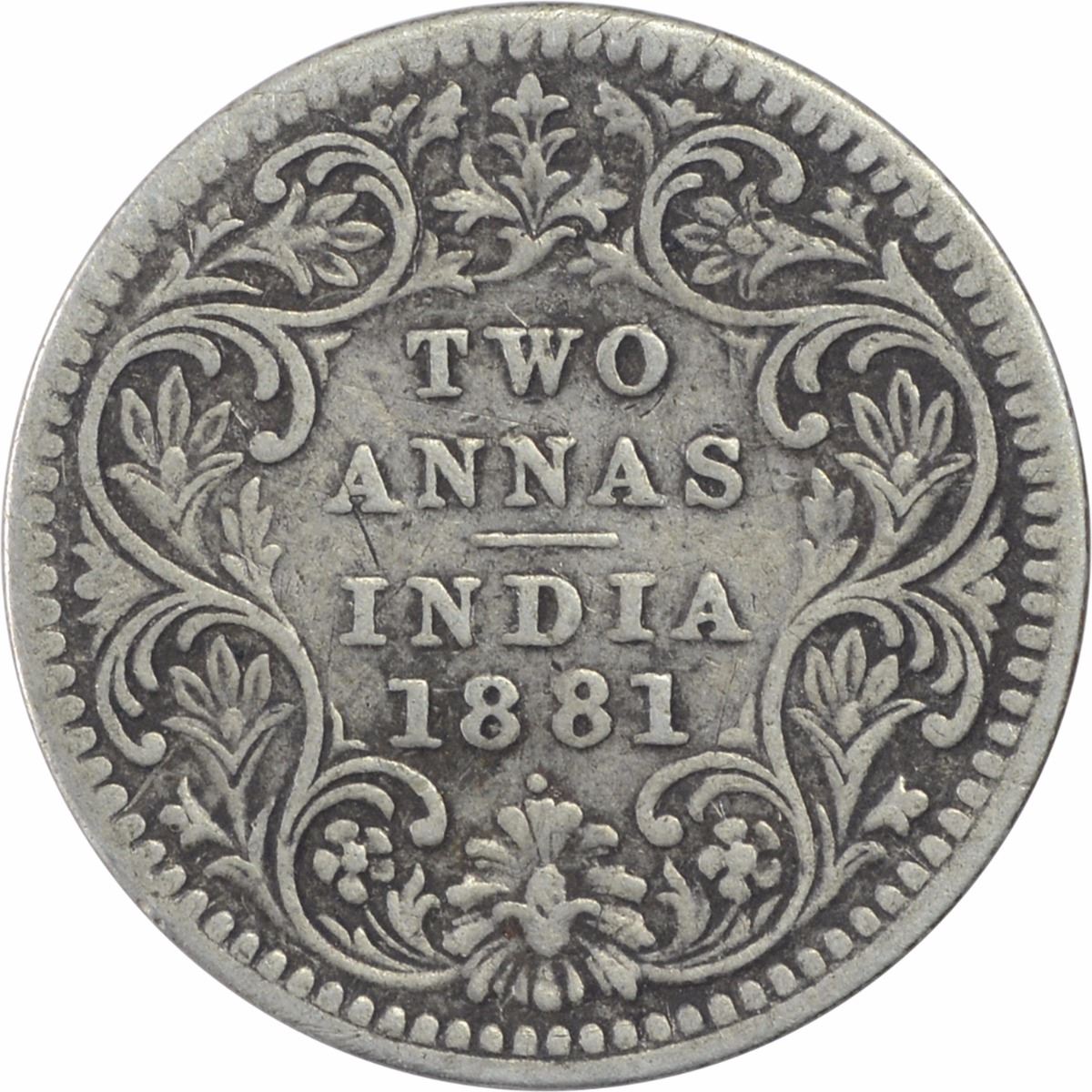 Silver Two Annas Coin of Victoria Empress of Bombay Mint of 1881.