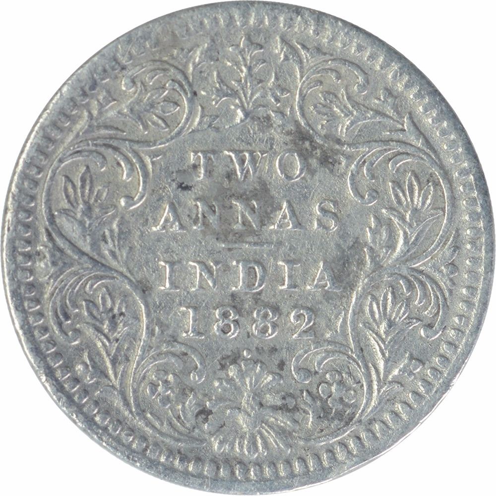Silver Two Annas Coin of Victoria Empress of Bombay Mint of 1882.