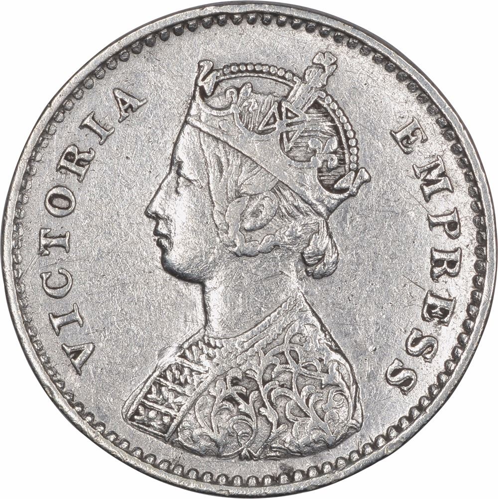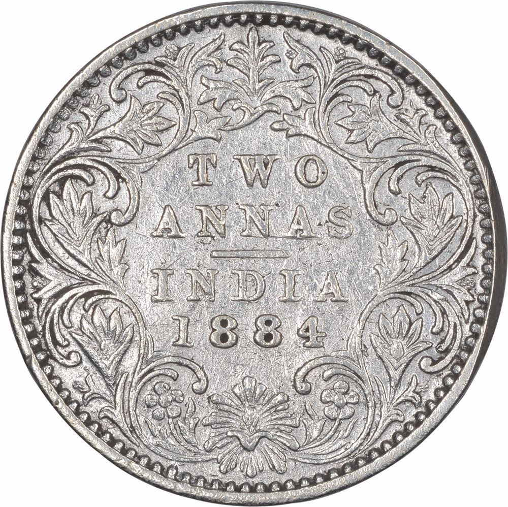 1884, Victoria Empress, Silver 2 Annas, Bombay Mint, A/I, (PR # 531), about very fine.