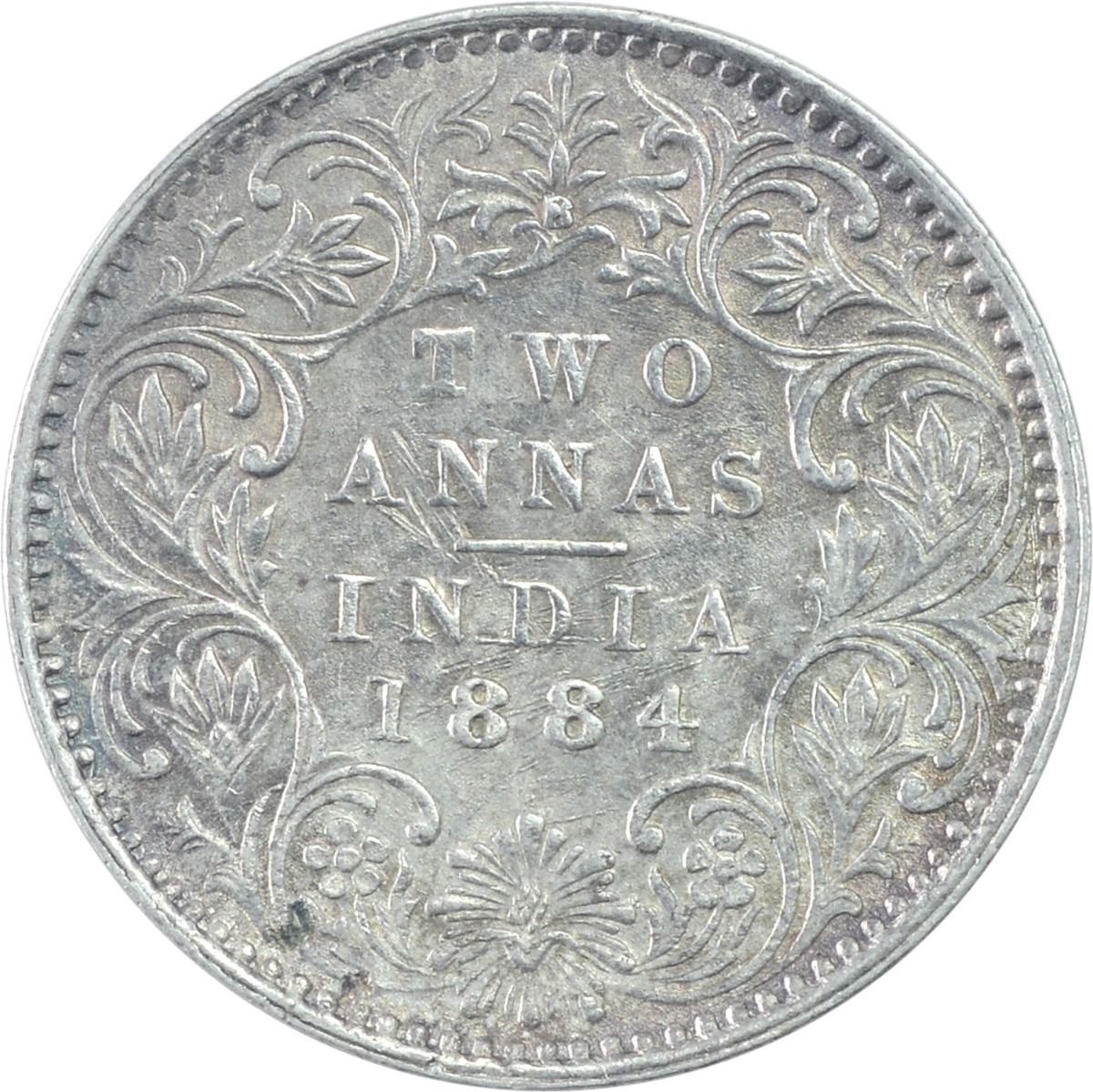 Silver Two Annas Coin of Victoria Empress of Bombay Mint of 1884.