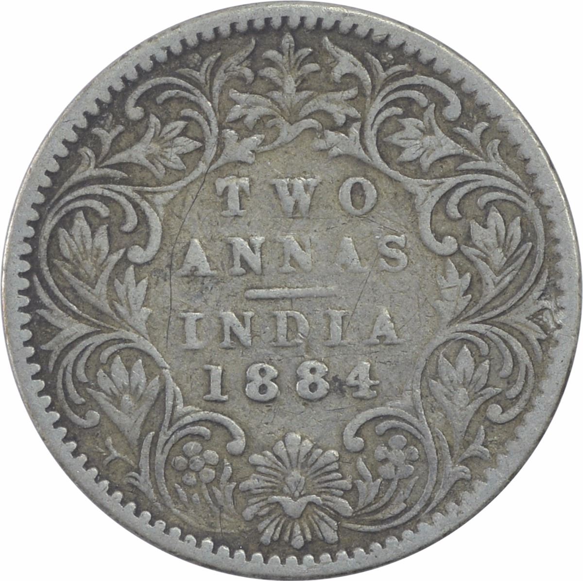 Silver Two Annas Coin of Victoria Empress of Bombay Mint of 1884.