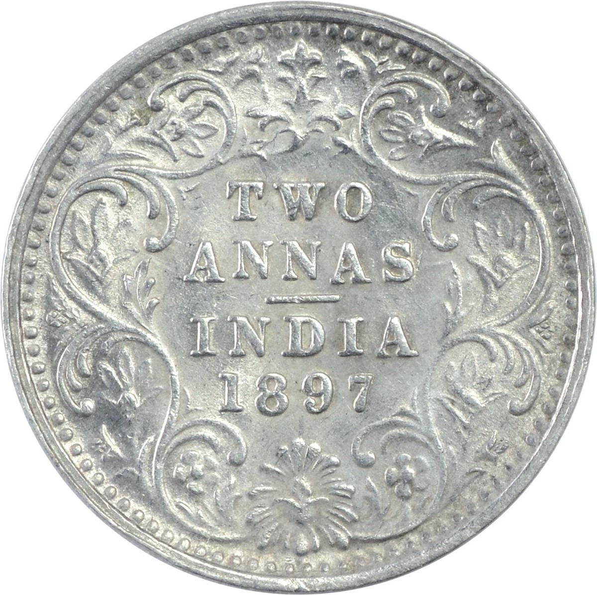 Silver Two Annas Coin of Victoria Empress of Bombay Mint of 1897.