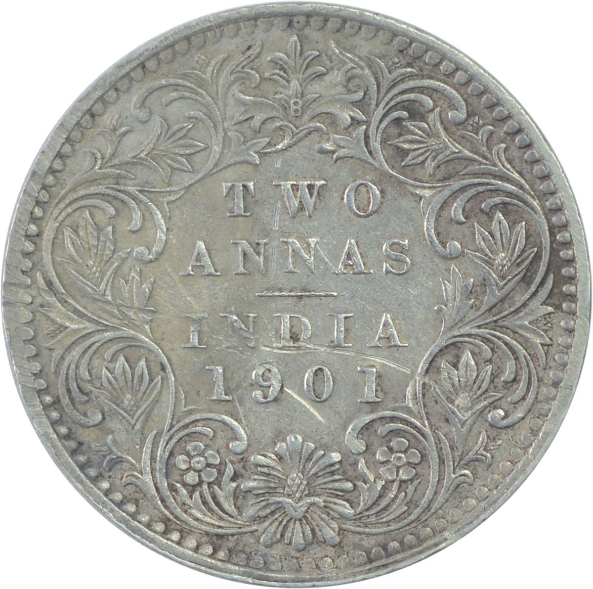 Silver Two Annas Coin of Victoria Empress of Bombay Mint of 1901.