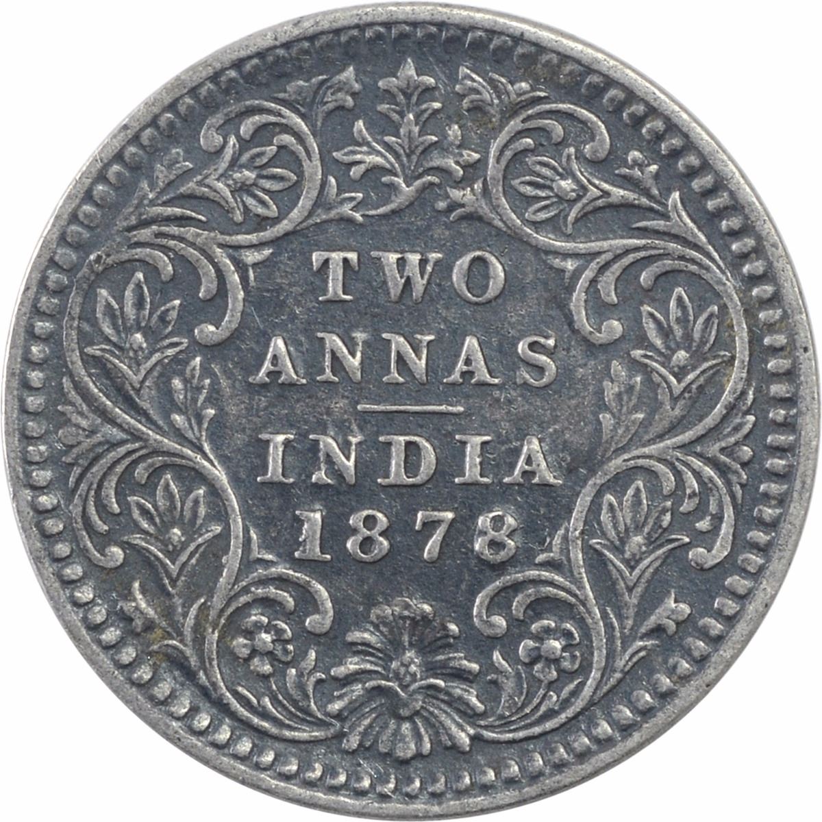 Silver Two Annas Coin of Victoria Empress of Calcutta Mint of 1878.