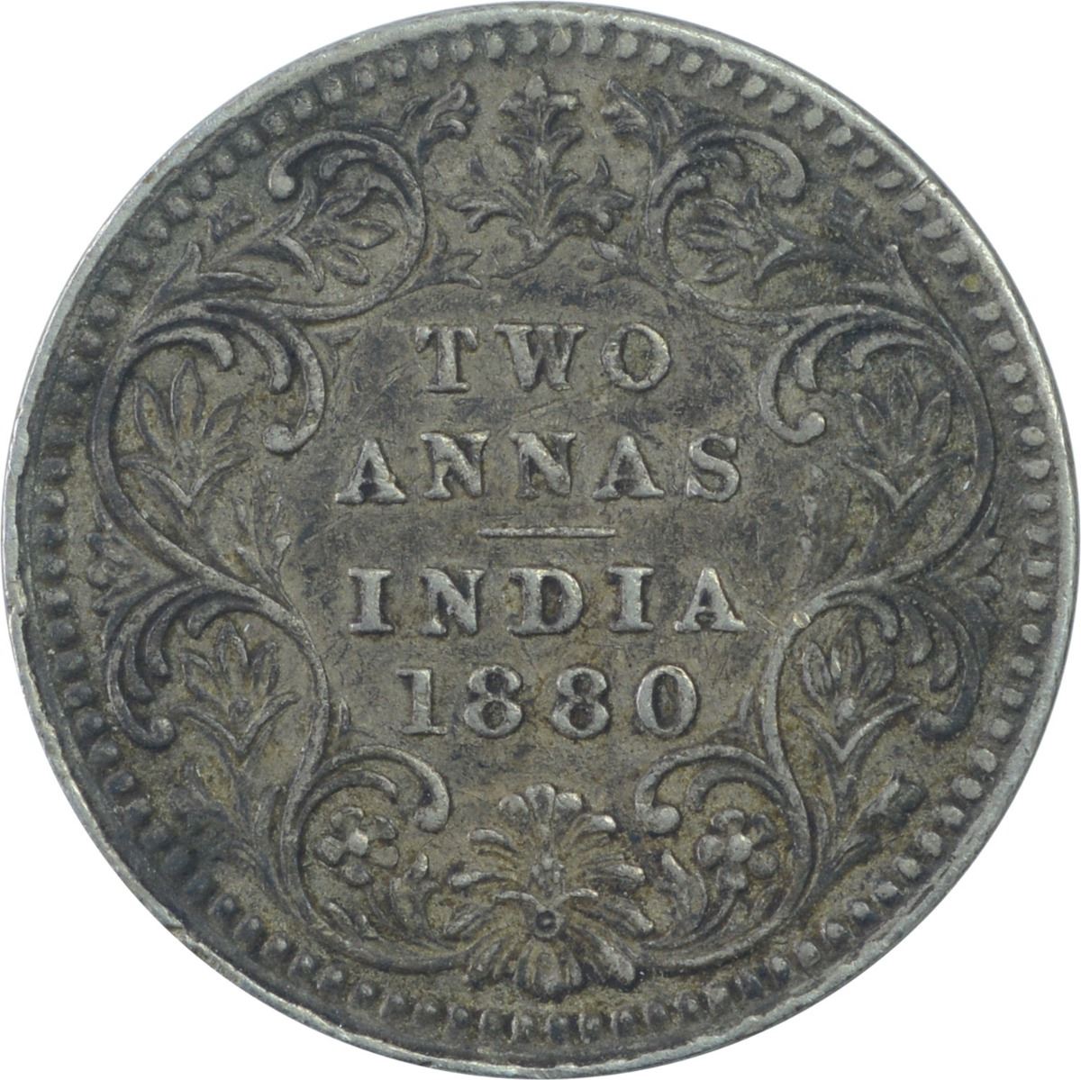 Silver Two Annas Coin of Victoria Empress of Calcutta Mint of 1880.
