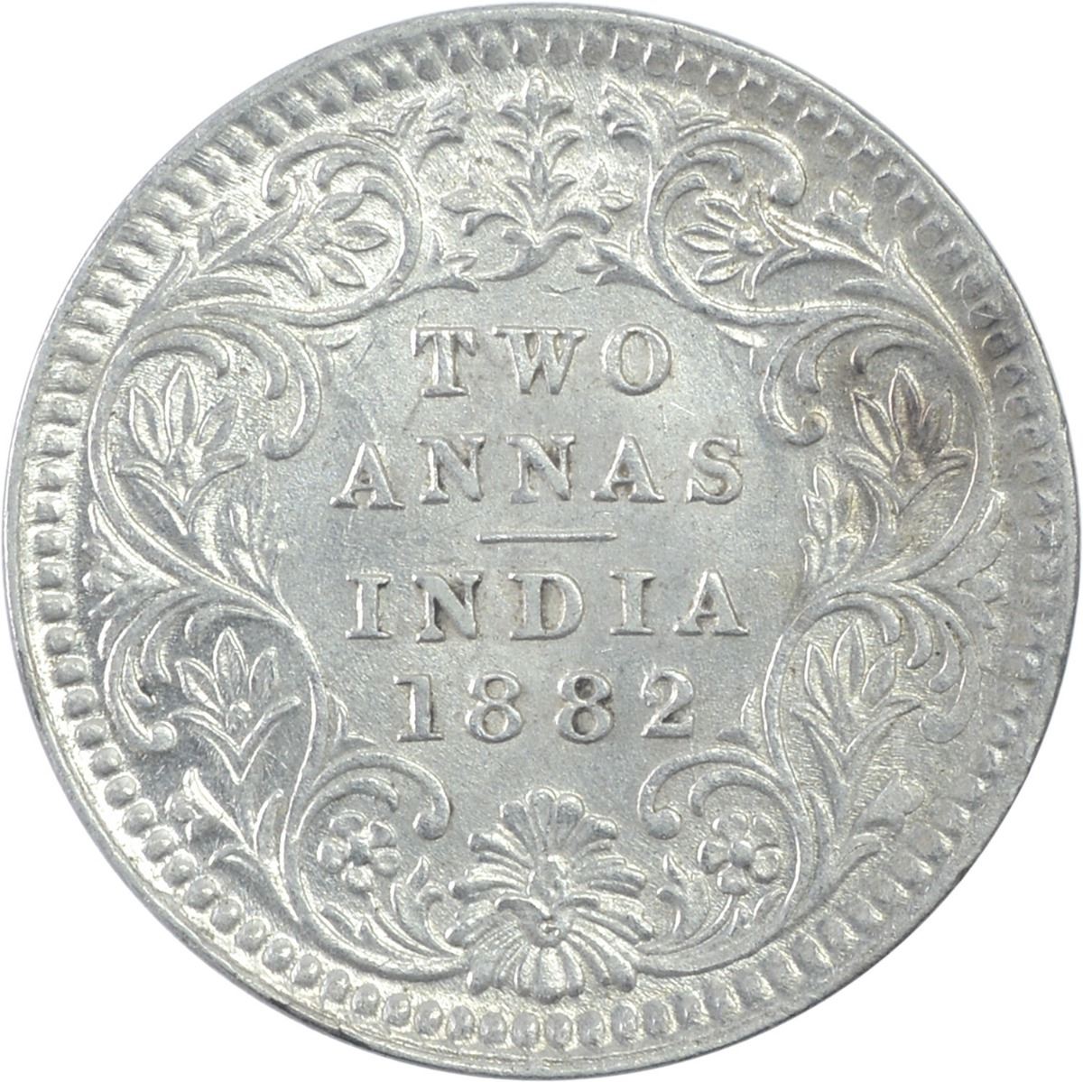 Silver Two Annas Coin of Victoria Empress of Calcutta Mint of 1882.