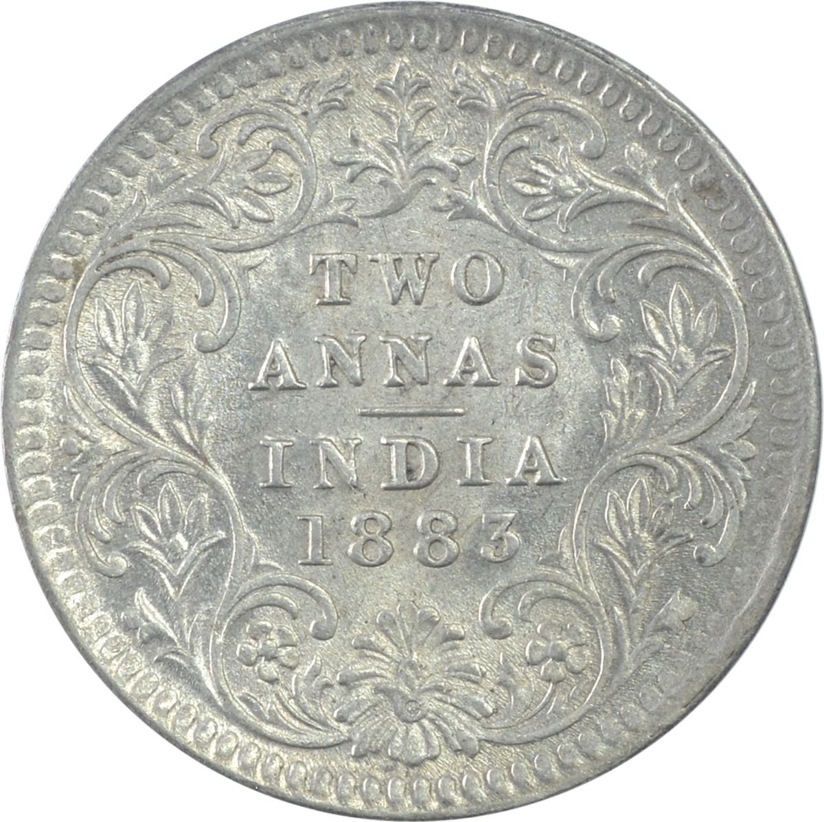 Silver Two Annas Coin of Victoria Empress of Calcutta Mint of 1883.