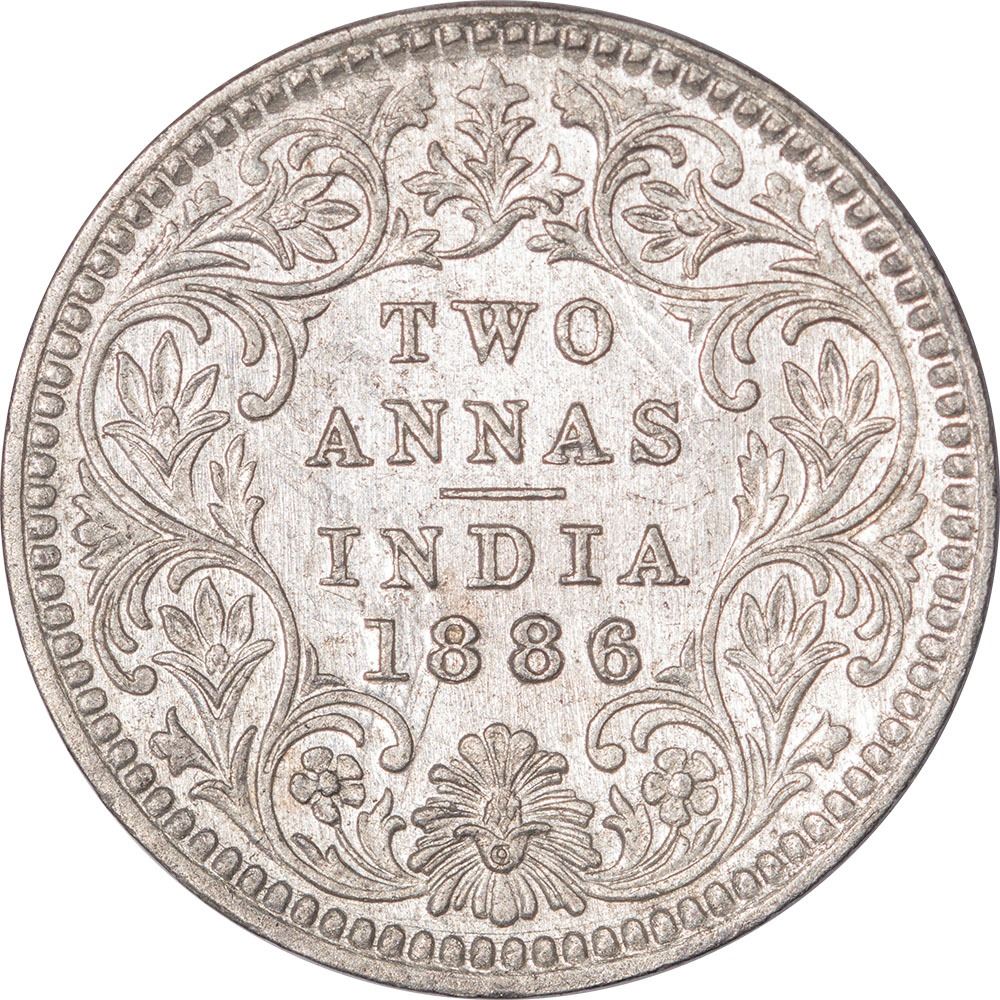 Silver Two Annas Coin of Victoria Empress of Calcutta Mint of 1886.