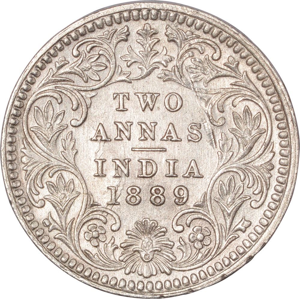 Silver Two Annas Coin of Victoria Empress of Calcutta Mint of 1889.