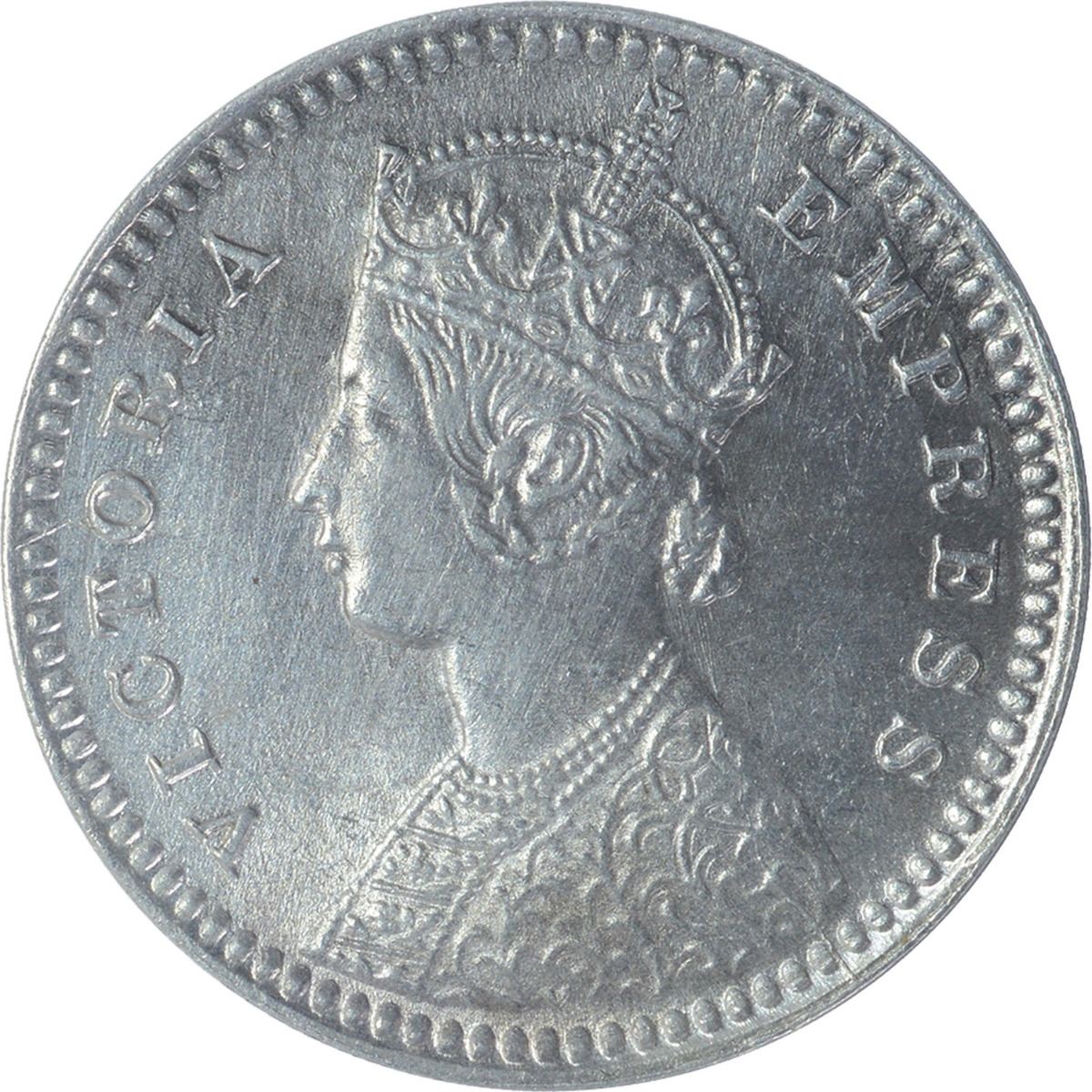 1889,Victoria Empress,Silver 2 Annas,Calcutta Mint,B/II/C Incuse, (PR # 504),Gem UNC,Rare.
