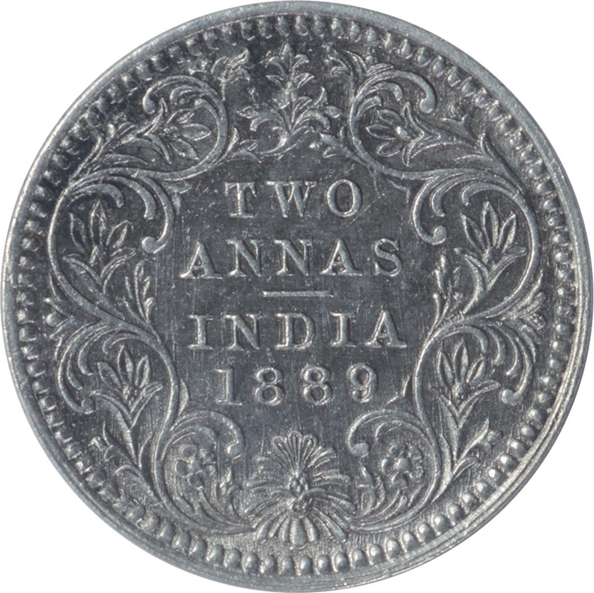 Silver Two Annas Coin of Victoria Empress of Calcutta Mint of 1889.