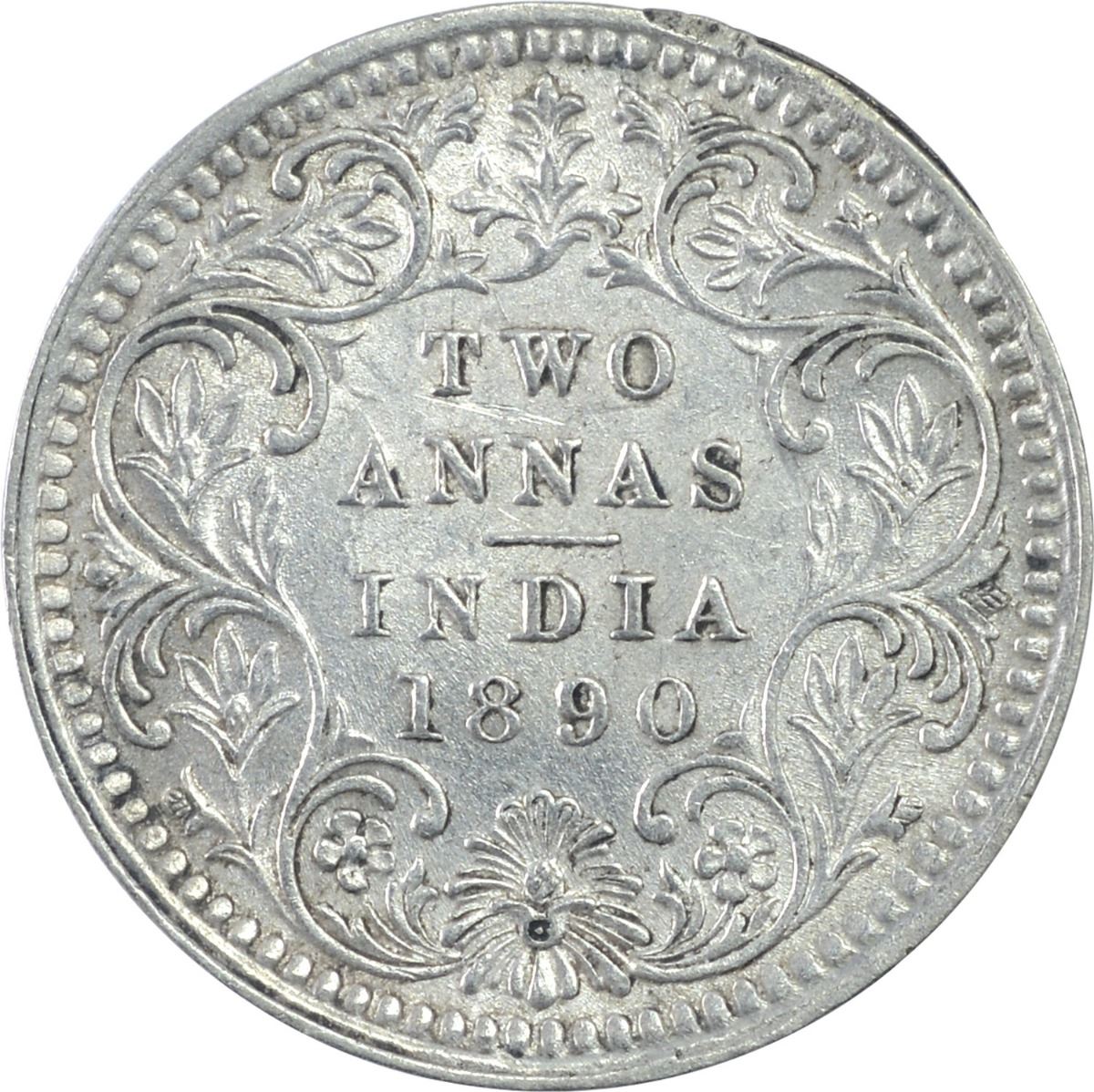 Silver Two Annas Coin of Victoria Empress of Calcutta Mint of 1890.