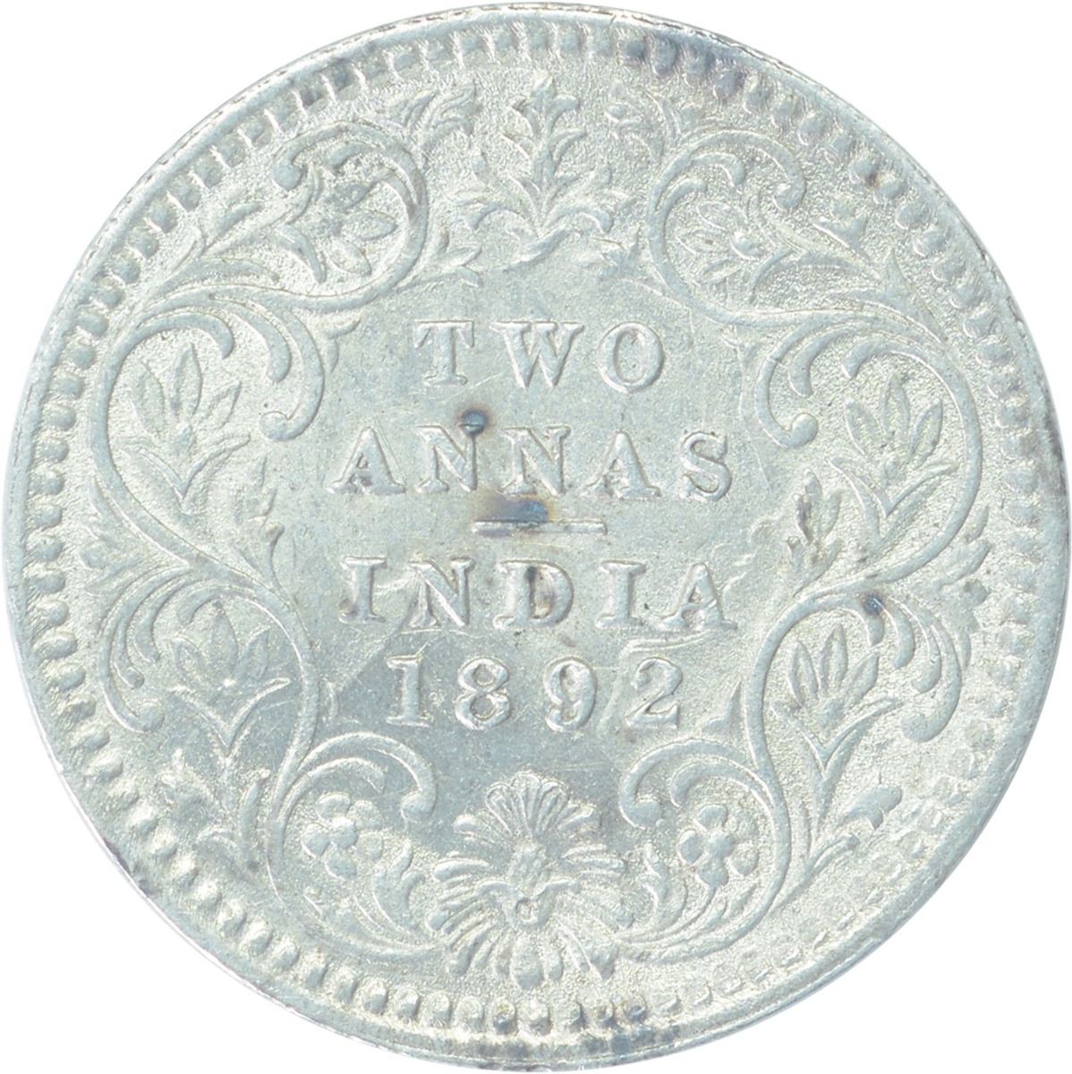 Silver Two Annas Coin of Victoria Empress of Calcutta Mint of 1892.
