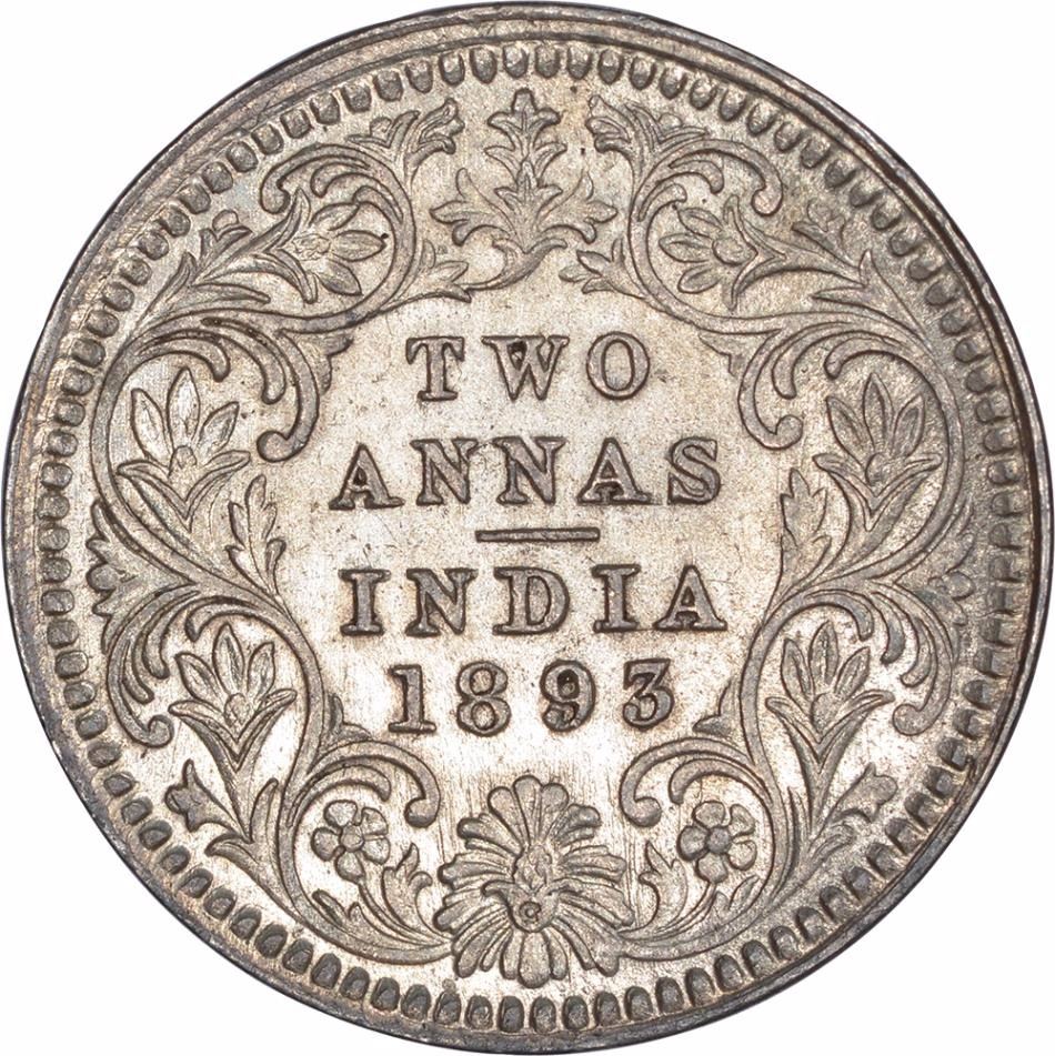Silver Two Annas Coin of Victoria Empress of Calcutta Mint of 1893.