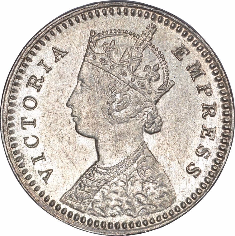 1893, Victoria Empress, Silver 2 Annas, Calcutta Mint, B/II/C incuse, (PR # 508), UNC with some toning, Scarce.