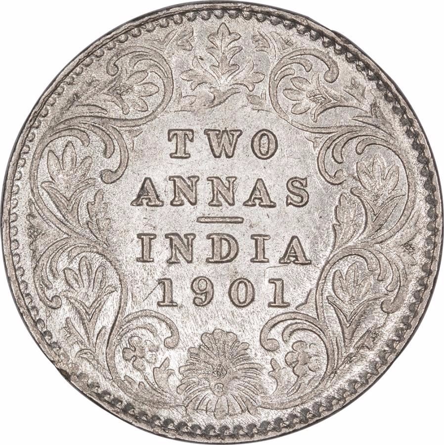 Silver Two Annas Coin of Victoria Empress of Calcutta Mint of 1901.