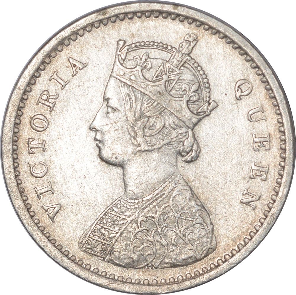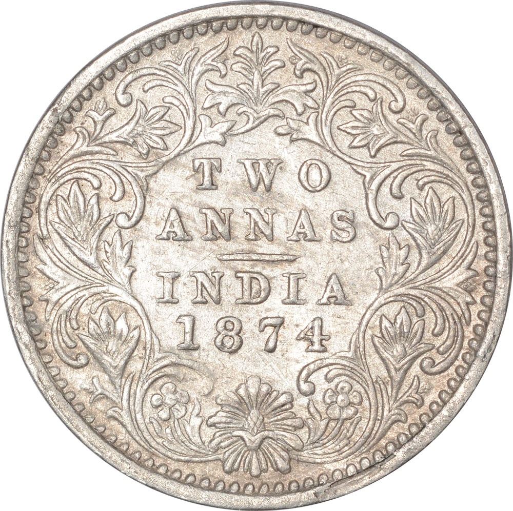 Silver Two Annas Coin of Victoria Queen of Bombay Mint of 1874.