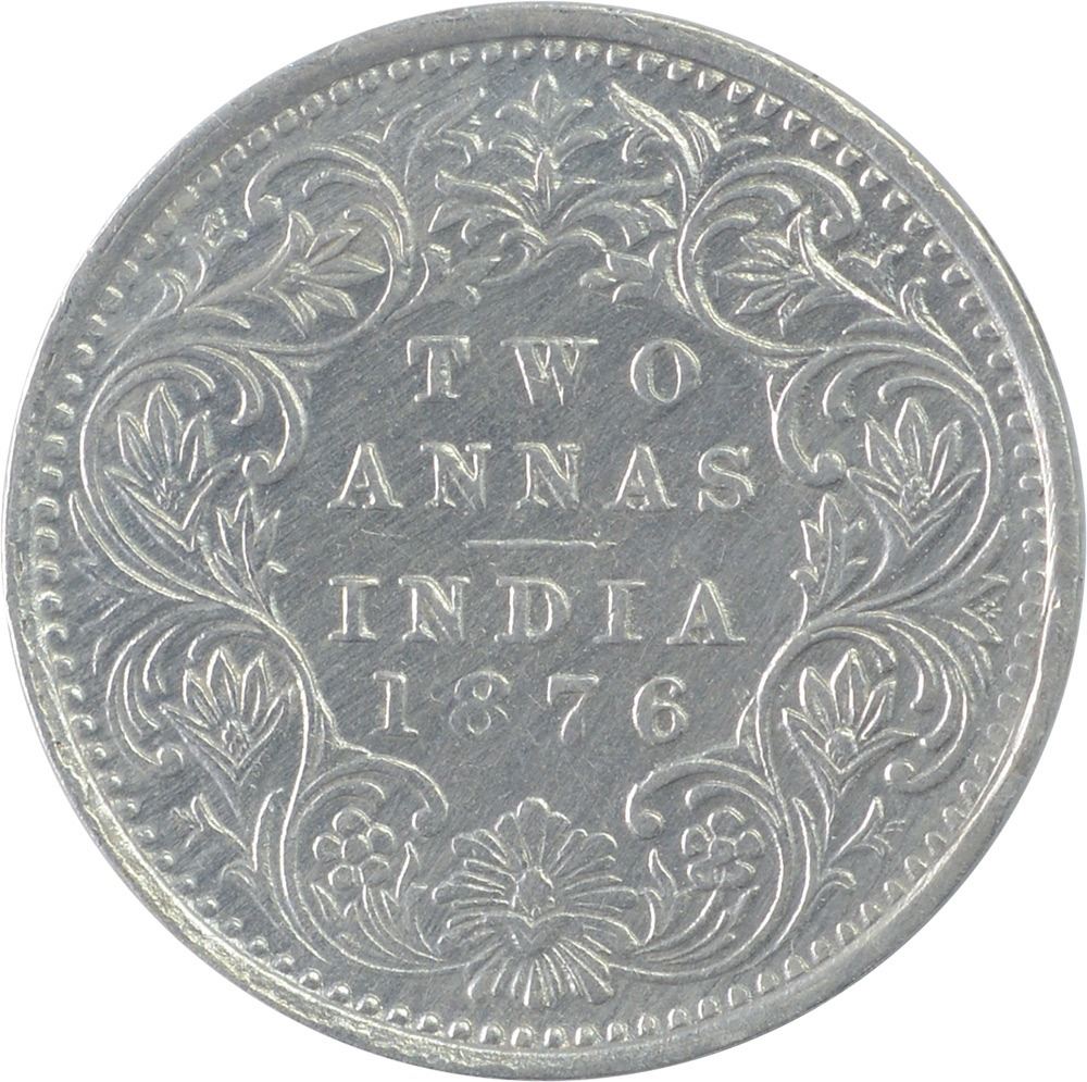 Silver Two Annas Coin of Victoria Queen of Bombay Mint of 1876.