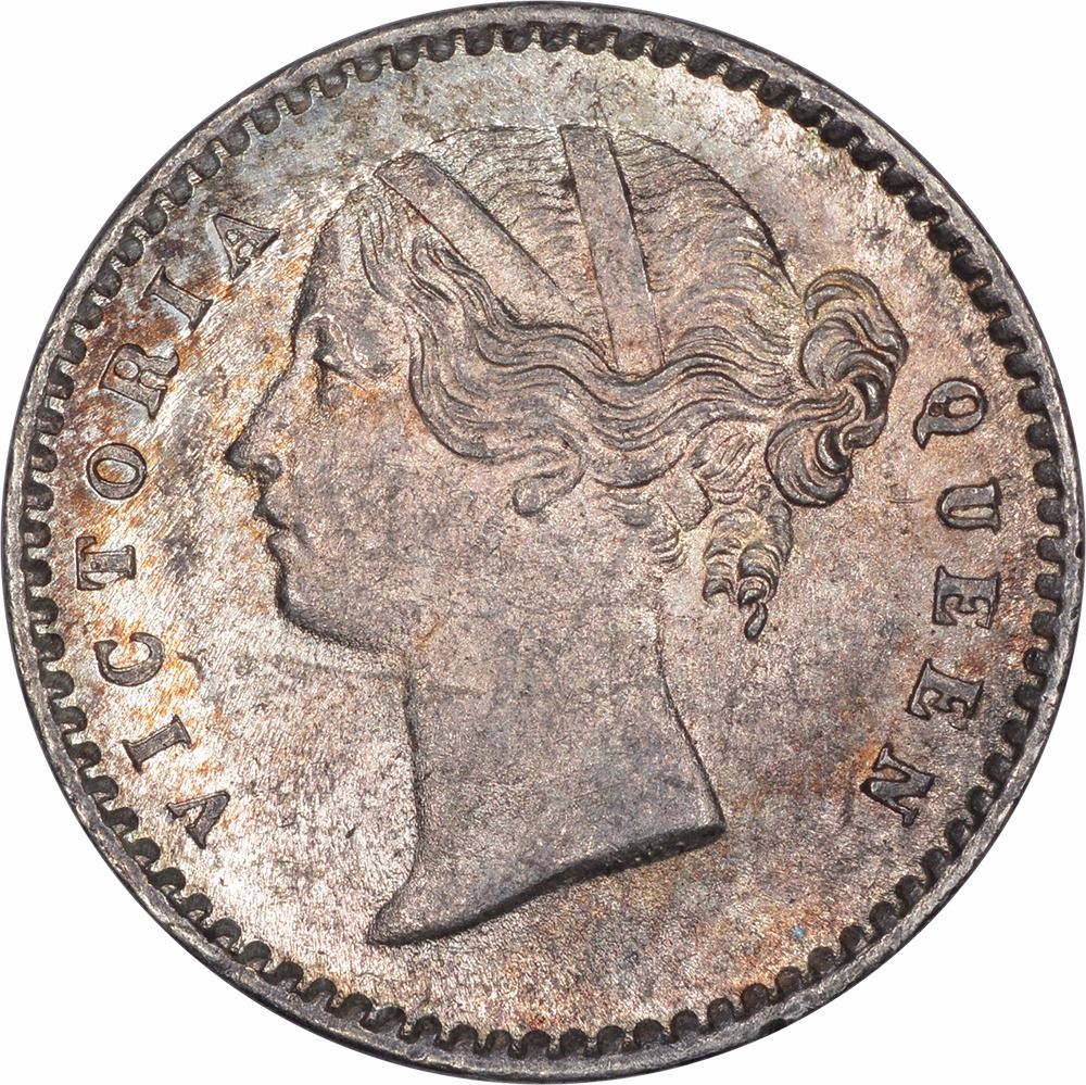 1841, Victoria Queen, Silver 2 Annas, Calcutta Mint, A/I, W.W. raised, 9 berries (5L+4R), (PR # 122),toned UNC.