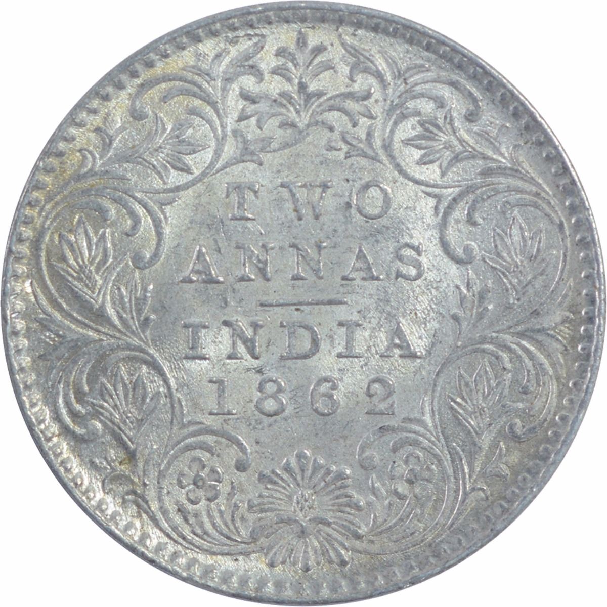 Silver Two Annas Coin of Victoria Queen of Calcutta Mint of 1862.