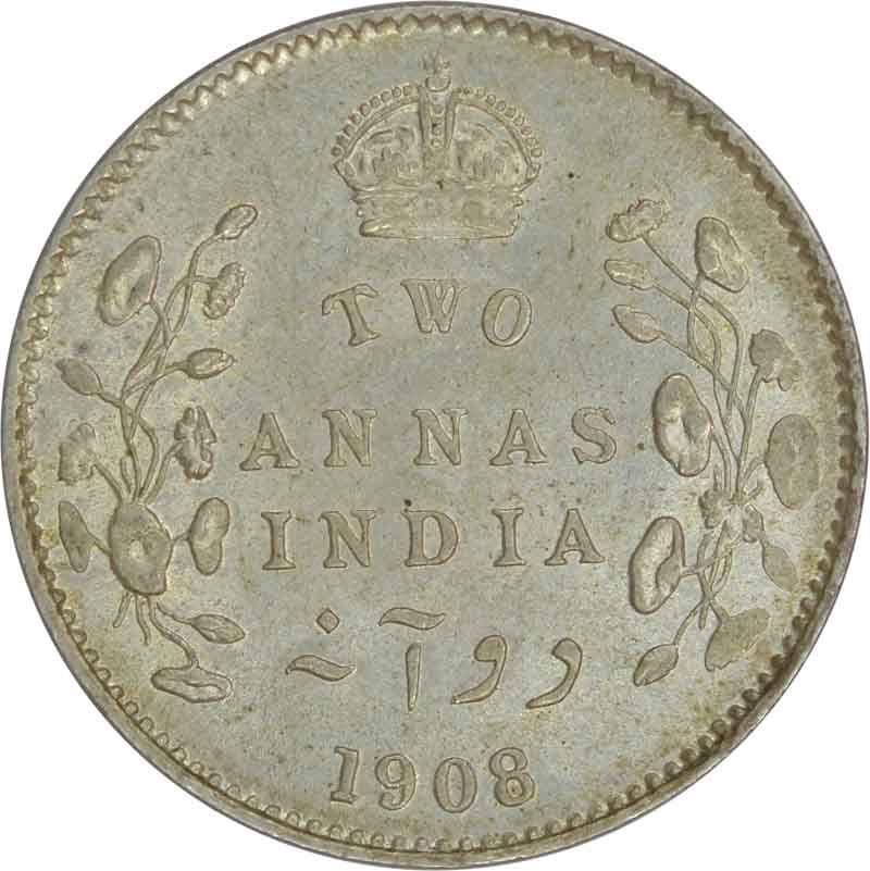 Silver Two Annas of King Edward VII of Calcutta Mint of 1908.