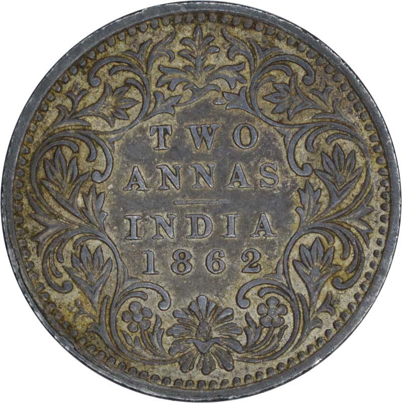 Silver Two Annas of Victoria Queen of Bombay Mint of 1862.