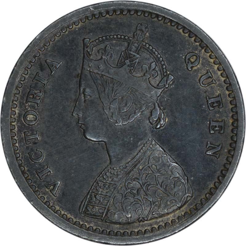 1862, Victoria Queen, Silver 2 Annas, Bombay Mint, 1.45g, 15.78mm, (PR # 486), about unc with black toning, superb strike, Scarce.