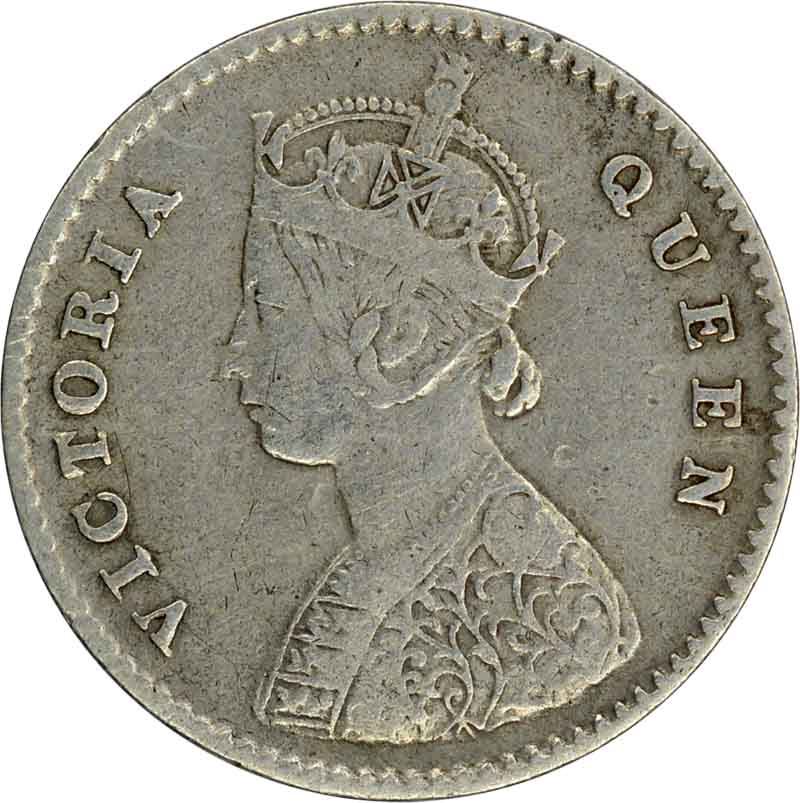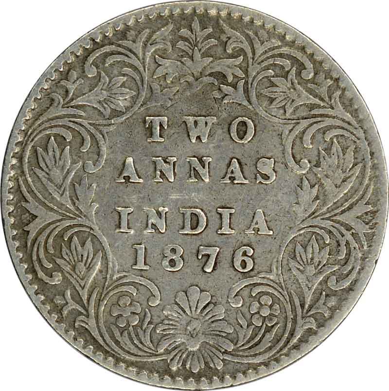Silver Two Annas of Victoria Queen of Calcutta Mint of 1876.