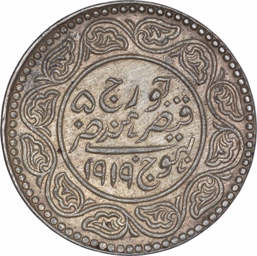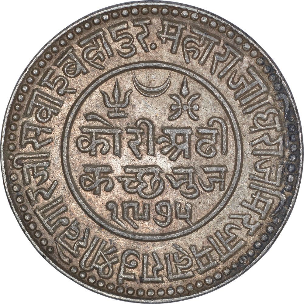 Kutch, Khengarji III, Bhuj Mint, Silver 2-1/2 Kori, VS 1975/1919AD, With the name of King George V, Obv: qaisar-e-hind, Rev: ruler name and value, 7.00g, 25.36mm, (KMY # 52),about extremely fine.