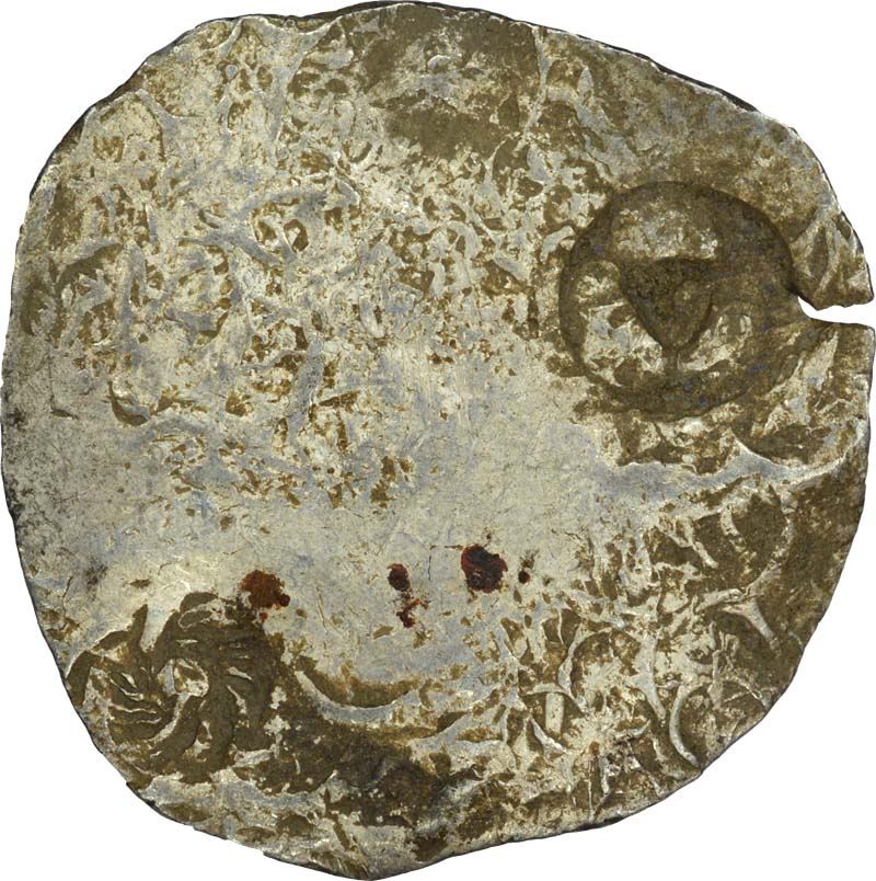 Panchala Janapada, Varanasi-Jaunpur Region, Silver Vimshatika,Broad Fan,Obv:geometrical symbol with depicts an octopus with spread tentacles above a cave, with three of its tentacles holding a horse, a snake and a bird,Rev:uniface,4.15g,27.43mm, aboutexcellent and deep hammered,Unpublished,ExtremelyRare.