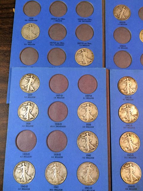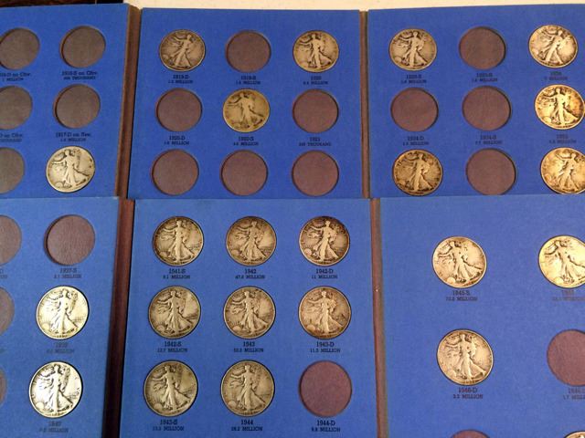 Silver Walking Liberty Half Dollars, Quarters and Dimes.