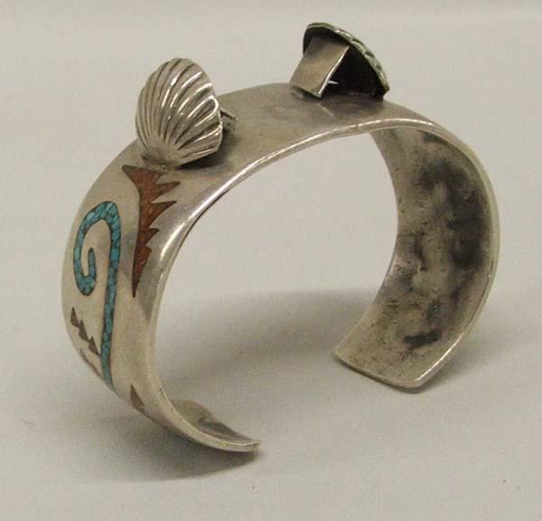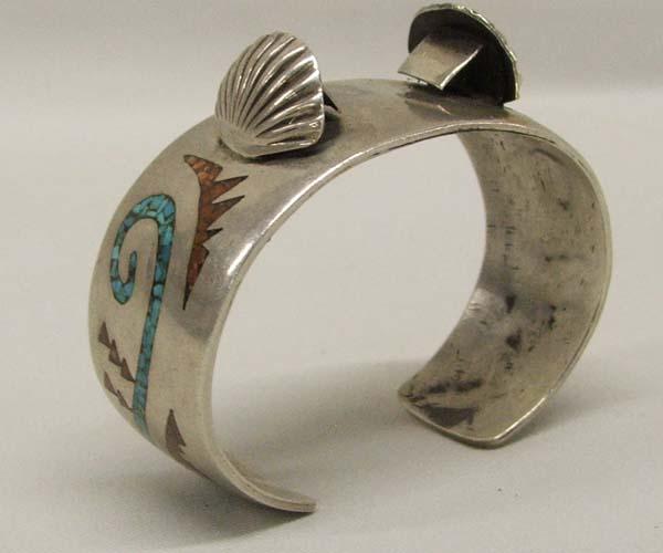 Silver Watch Bracelet W/Coral and Turquoise Inlay. Measures 6.75''x1'' SHI $15