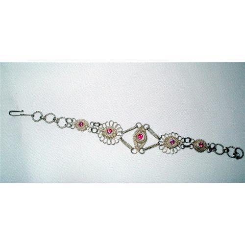 <tr><td>Title:Silver Wire & Pink Rhinestone Link Bracelet -</td></tr>