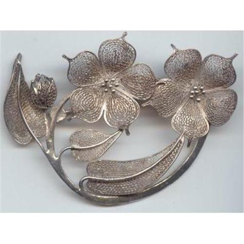 <tr><td>Title: Silver Wire Work Flower Brooch Large</td></tr>