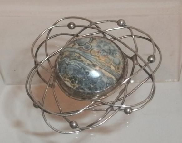Silver With Blues and Earthtone Round Pendant 2 " Round