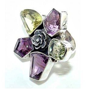 Silver and Amethyst & Lemon Quartz Ring. Allow 6 to 8 weeks for delivery.