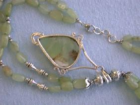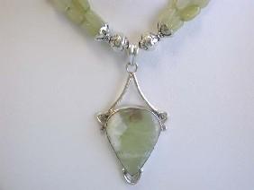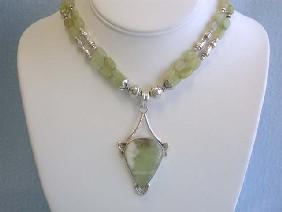 Silver and Aventurine Necklace; Pendant is approximately 3 inches x 1 inch and Length is approximately 17 inches long and weighs 60.4 grams