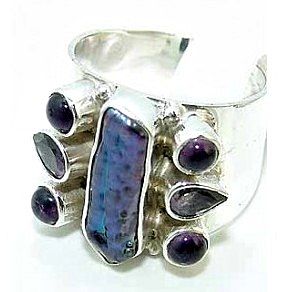 Silver and Biwa Pearl & Amethyst Ring. Allow 6 to 8 weeks for delivery.